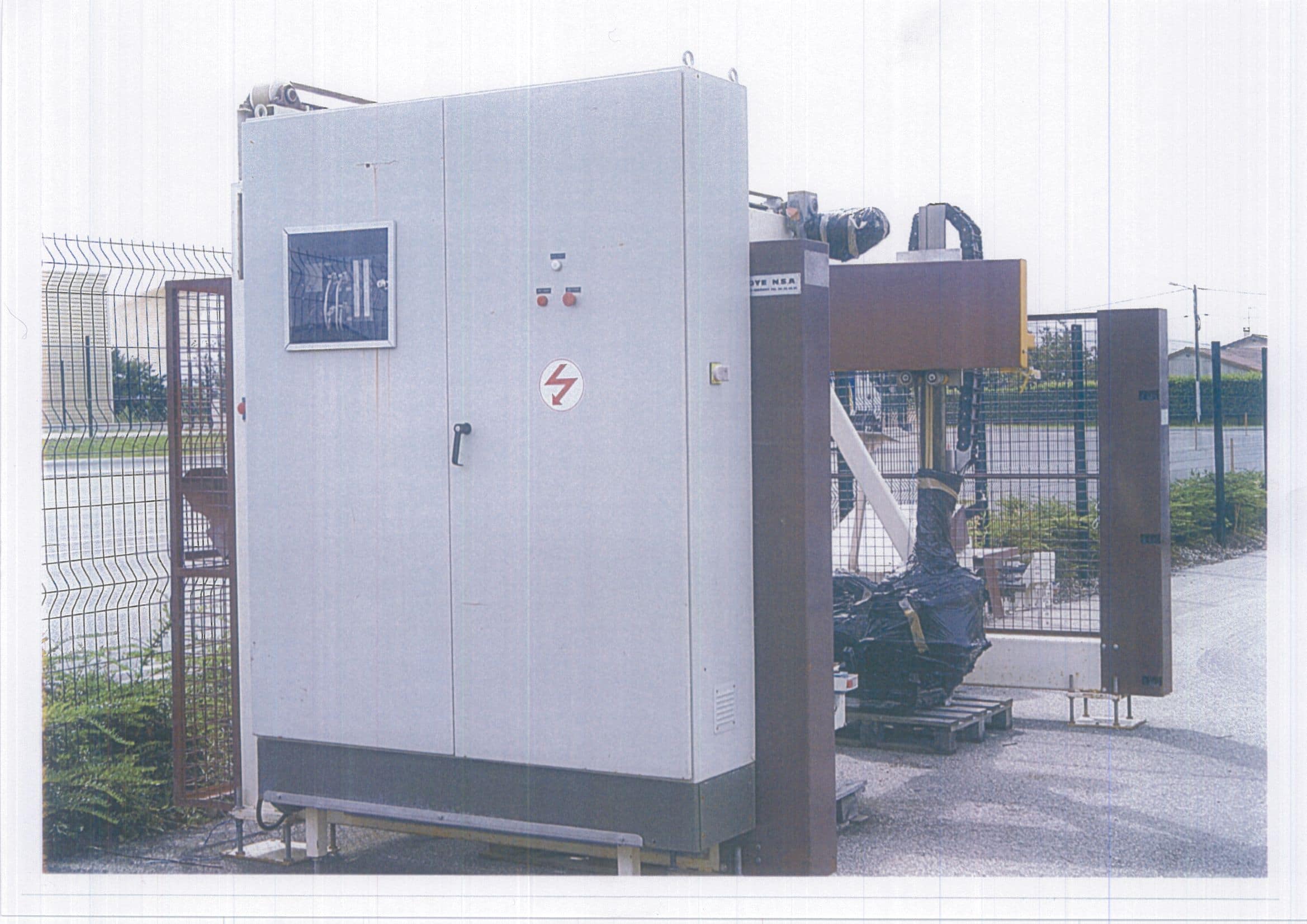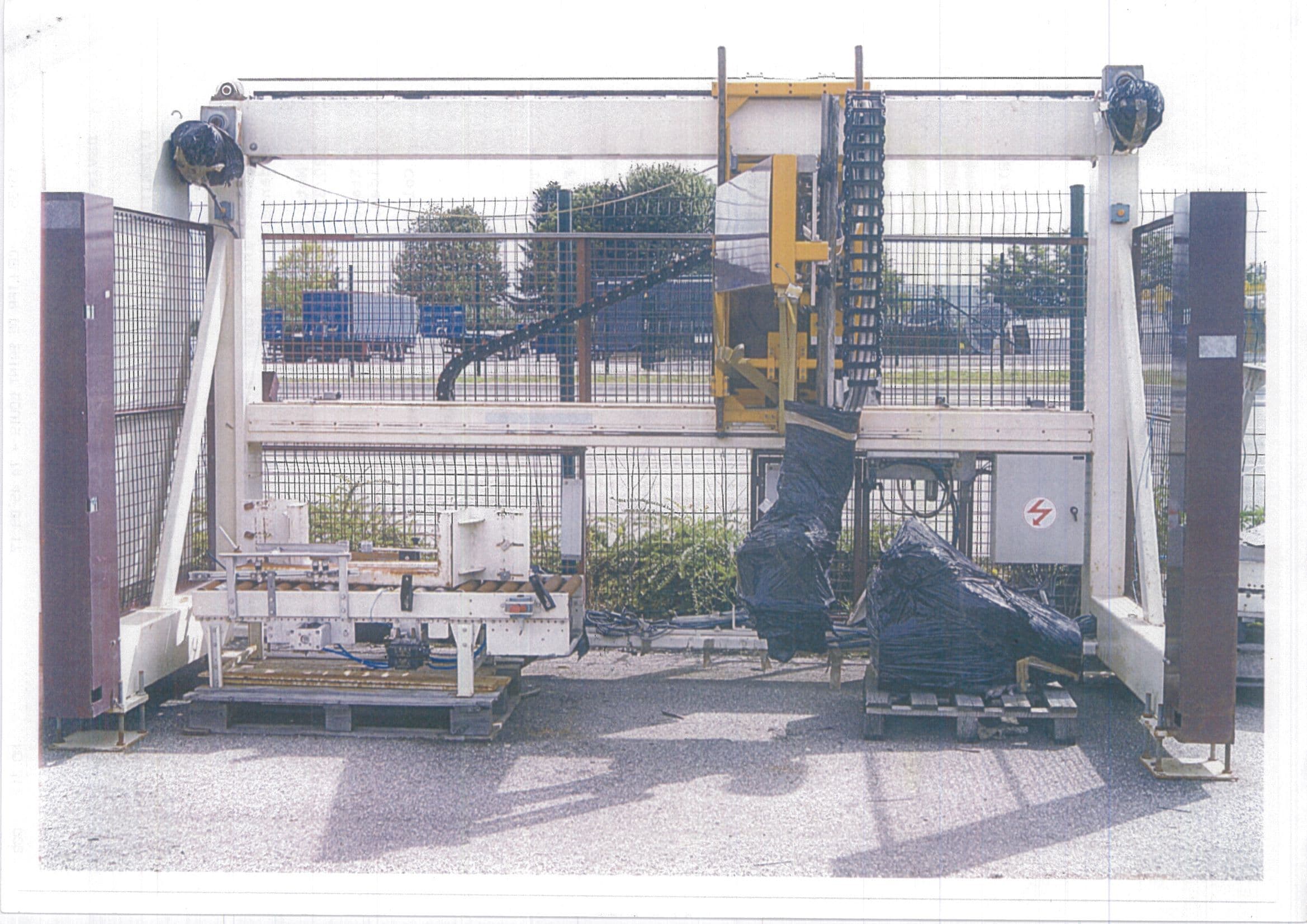 L’armoire de commande, située sur le côté gauche 1800x1600x400, est solidaire de l’ensemble. Elle contient tous les éléments électriques et électroniques nécessaires au fonctionnement du palettiseur, refaite à neuf aux normes CE.